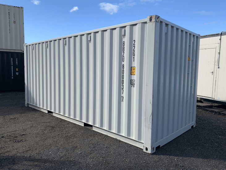 20ft light grey one trip shipping container. Wind & watertight, like new condition. Ideal for storage, site use, or modifications. Fast delivery available.