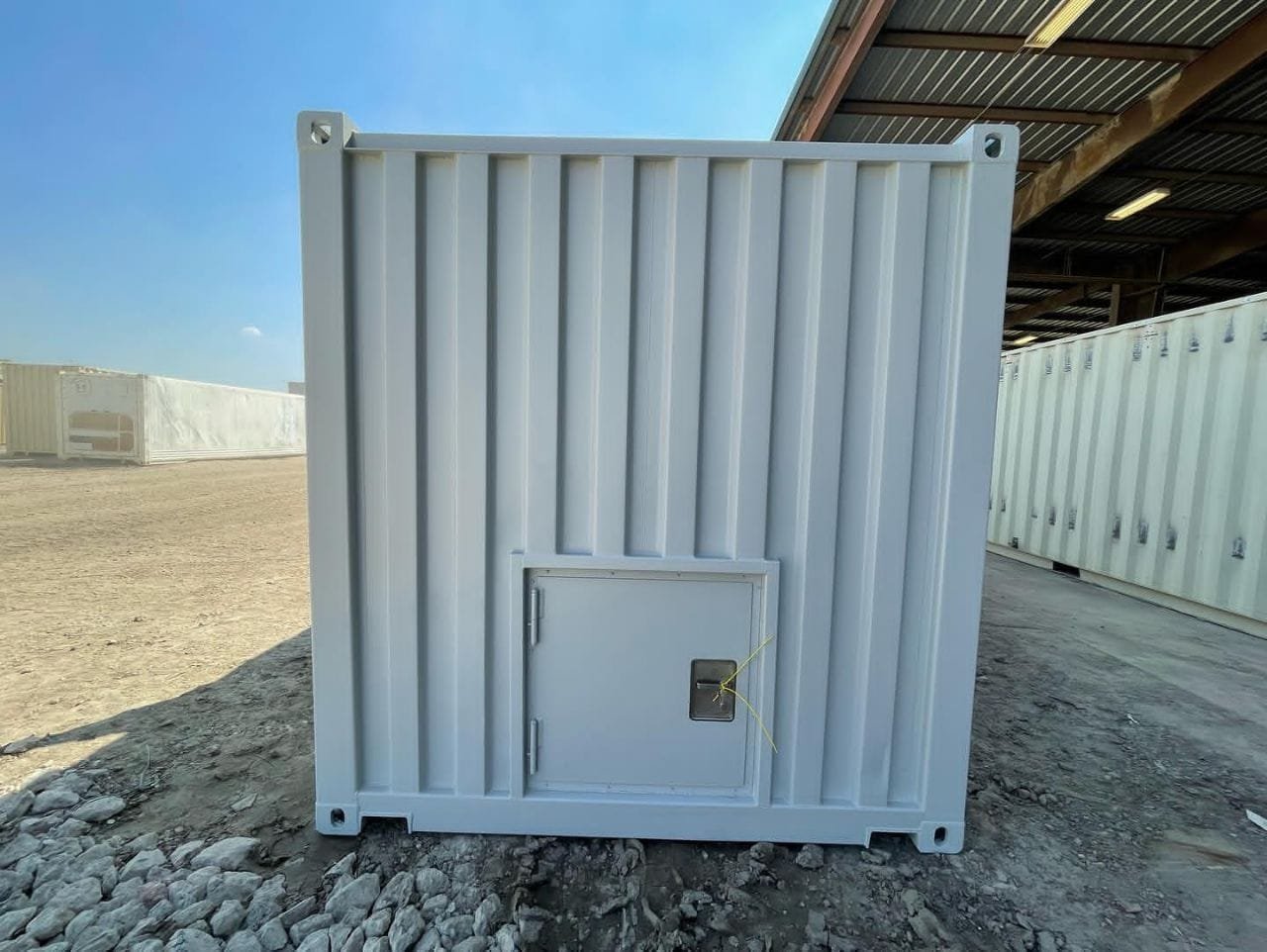 The 8ft x 8ft storage and shipping containers have flat panel doors, rather than the usual shipping container cargo doors. The flat doors are lockable and secure, they are also typically easier to open than the shipping container’s original cargo doors. There is also a rain guard above the 8ft x 8ft storage and shipping containers doors to prevent water egress