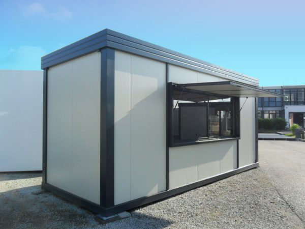 A snack pavilion/container measuring 15 square meters, equipped with a sales hatch.